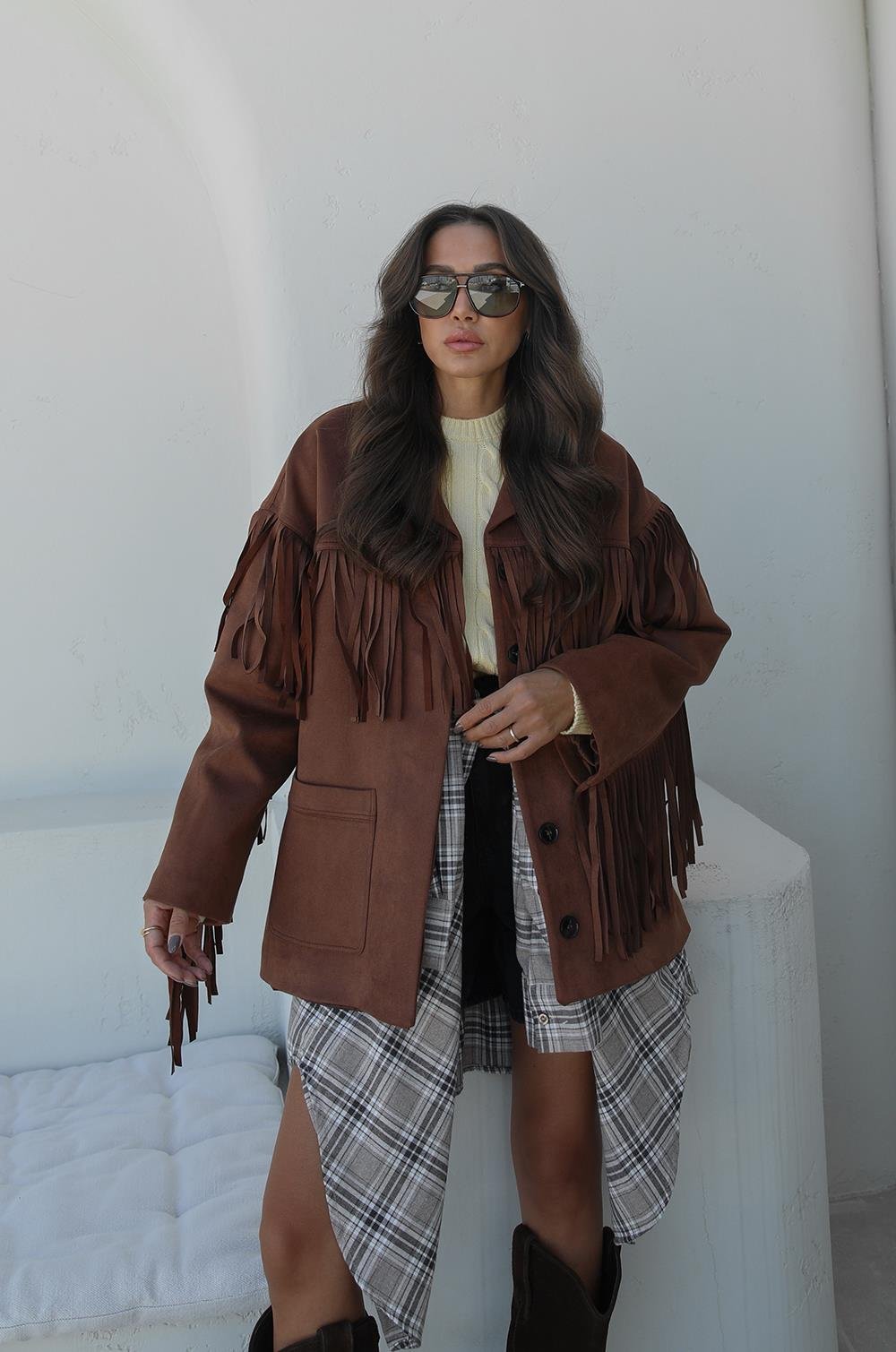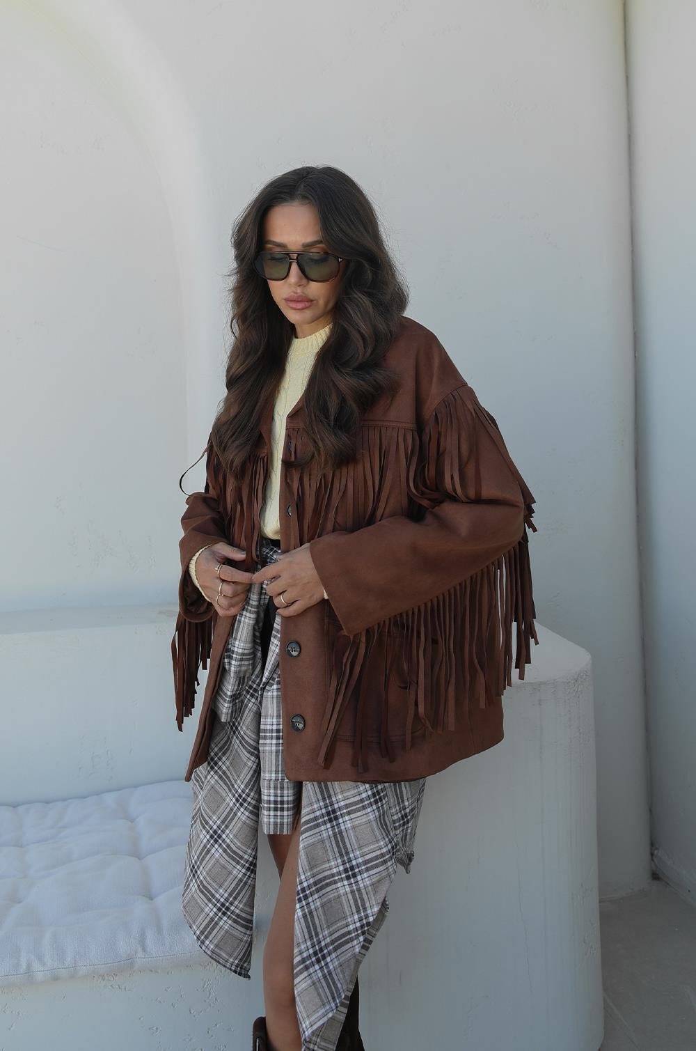 KAHVERENGI PÜSKÜLLÜ KOVBOY SÜET CEKET