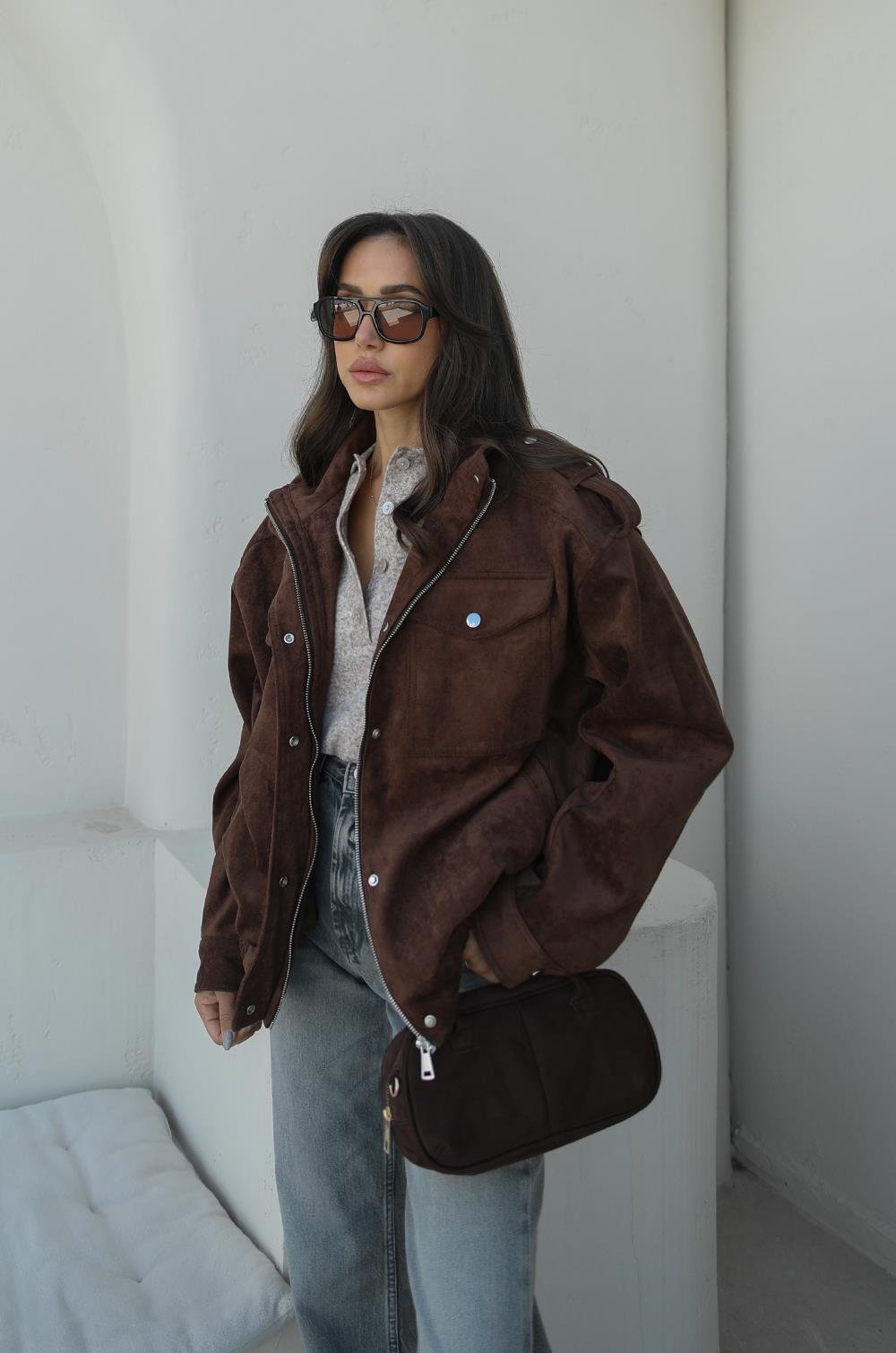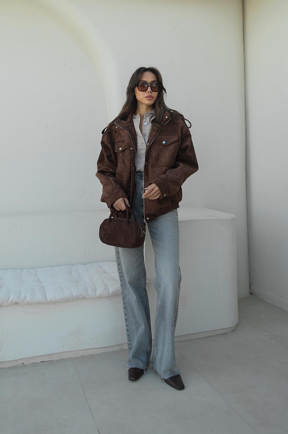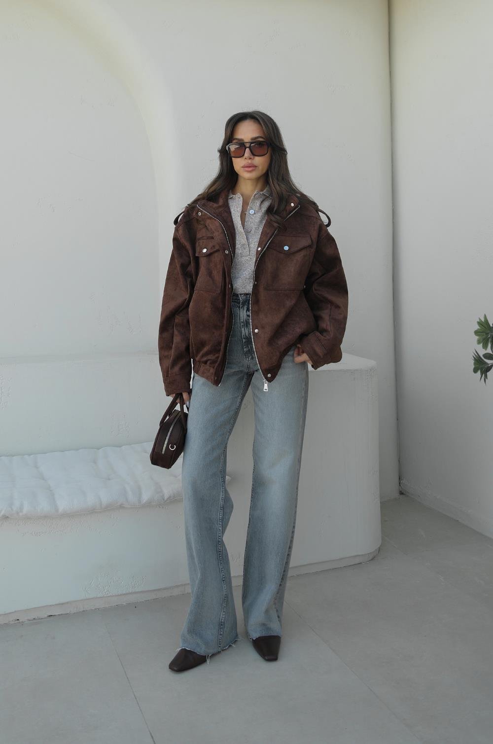 KAHVERENGI PREMIUM FABRIC DERI SÜET CEKET