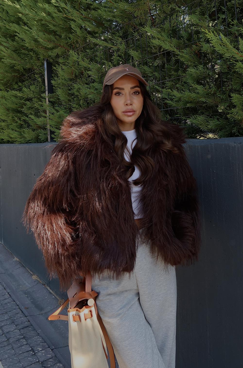 KAHVERENGI SAÇAKLI KÜRK MONT
