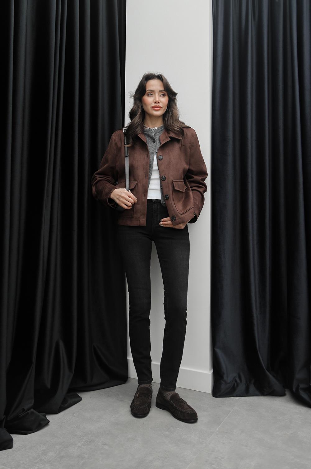 KAHVERENGI TISSUE KAPAK CEPLI SÜET CEKET