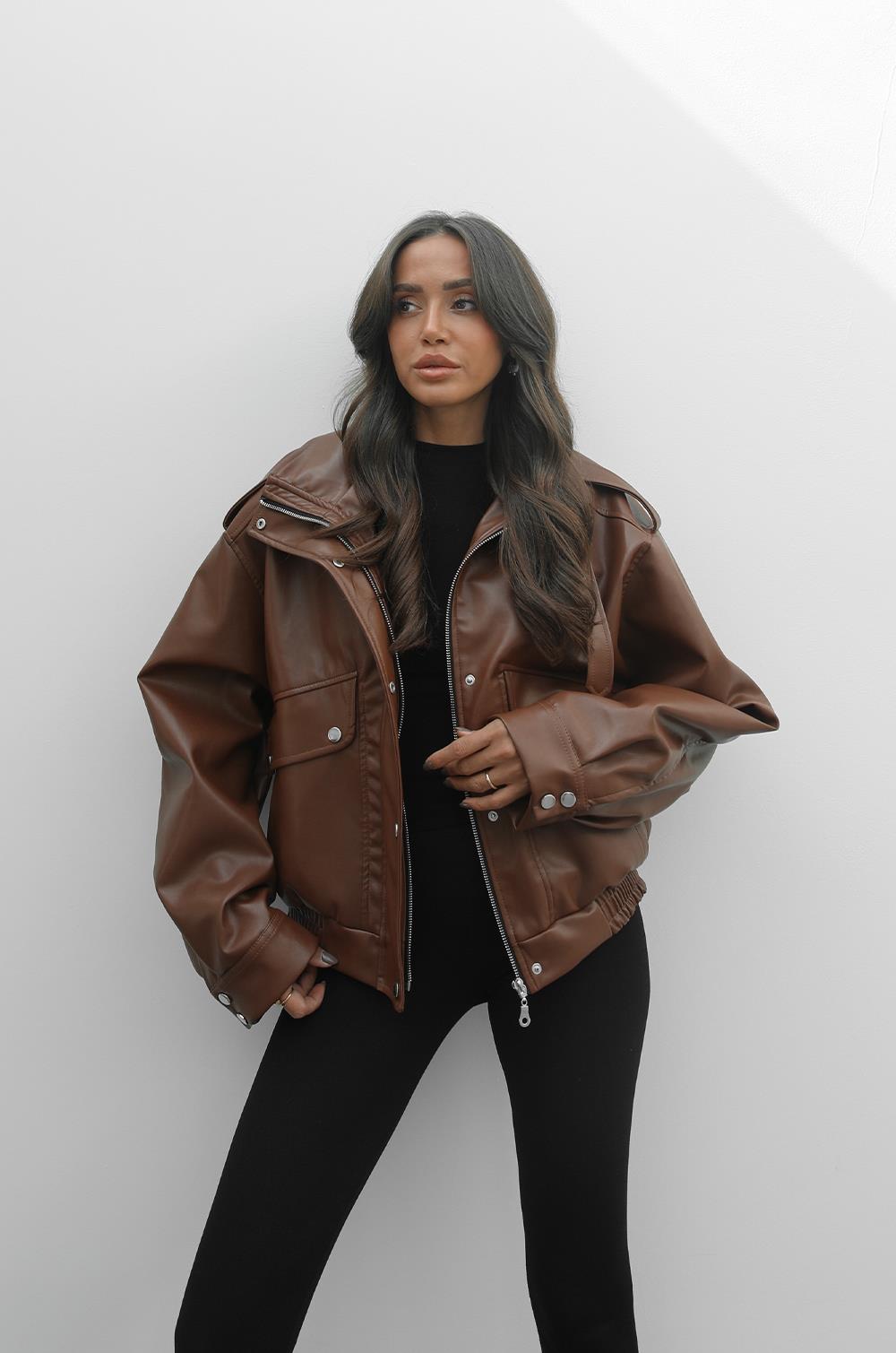 KAHVERENGI YAKASI KEMER DETAYLI DERI CEKET