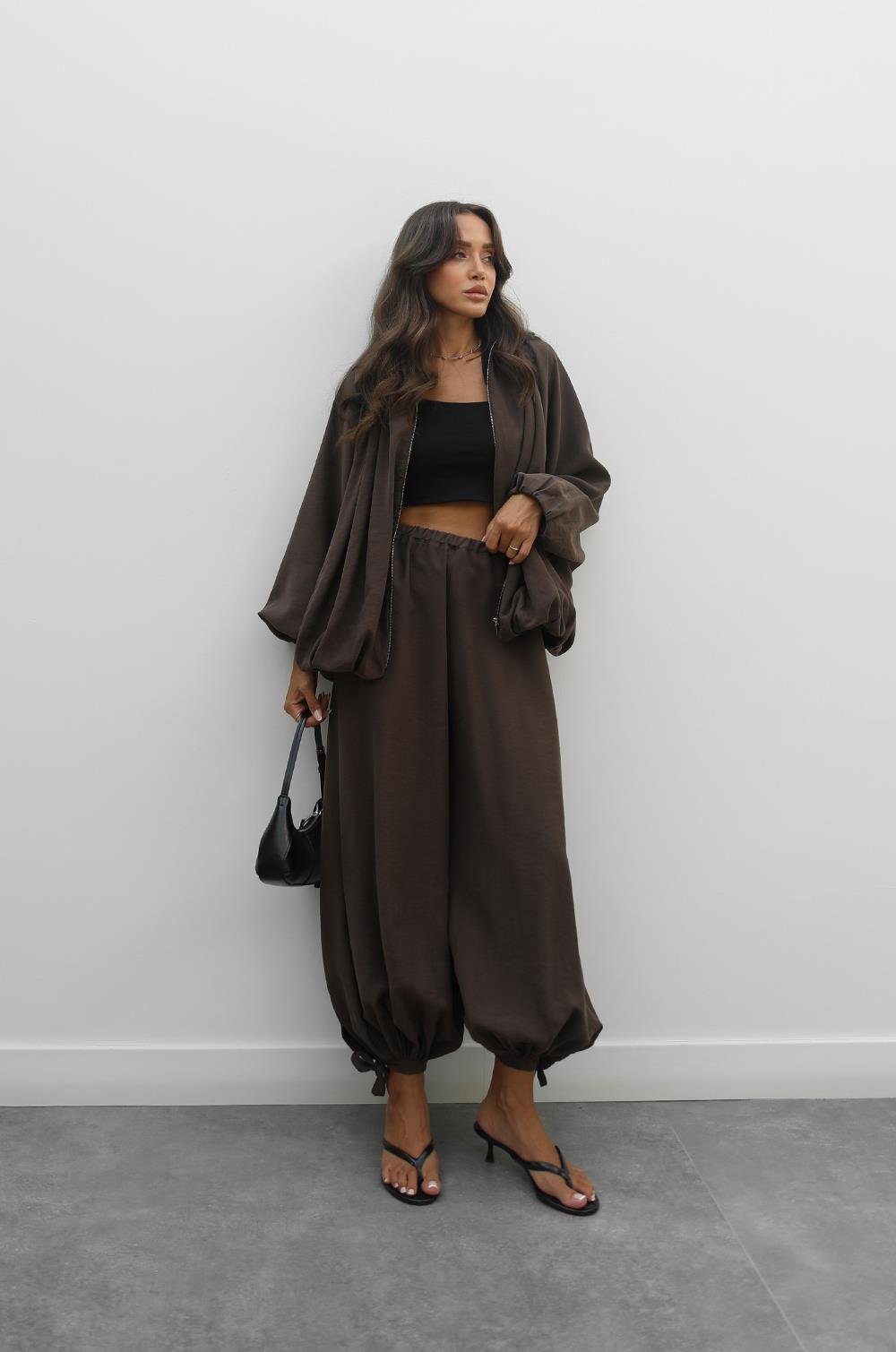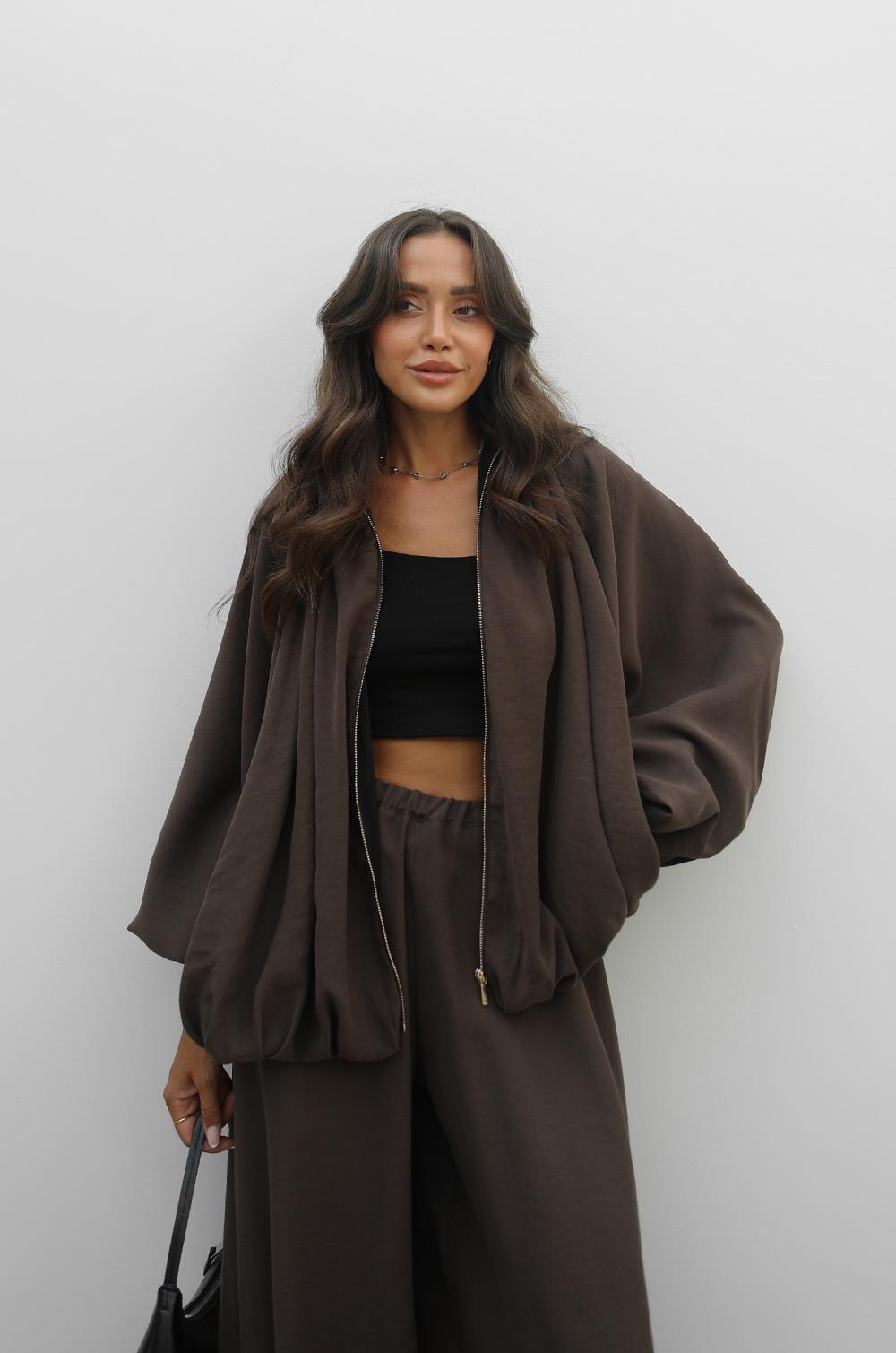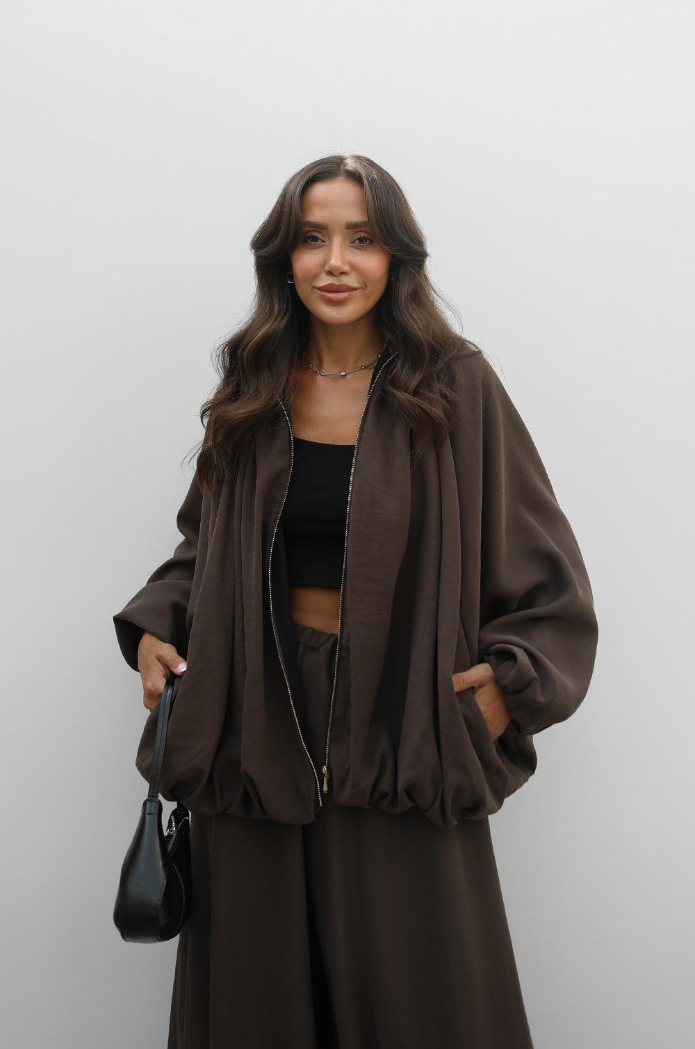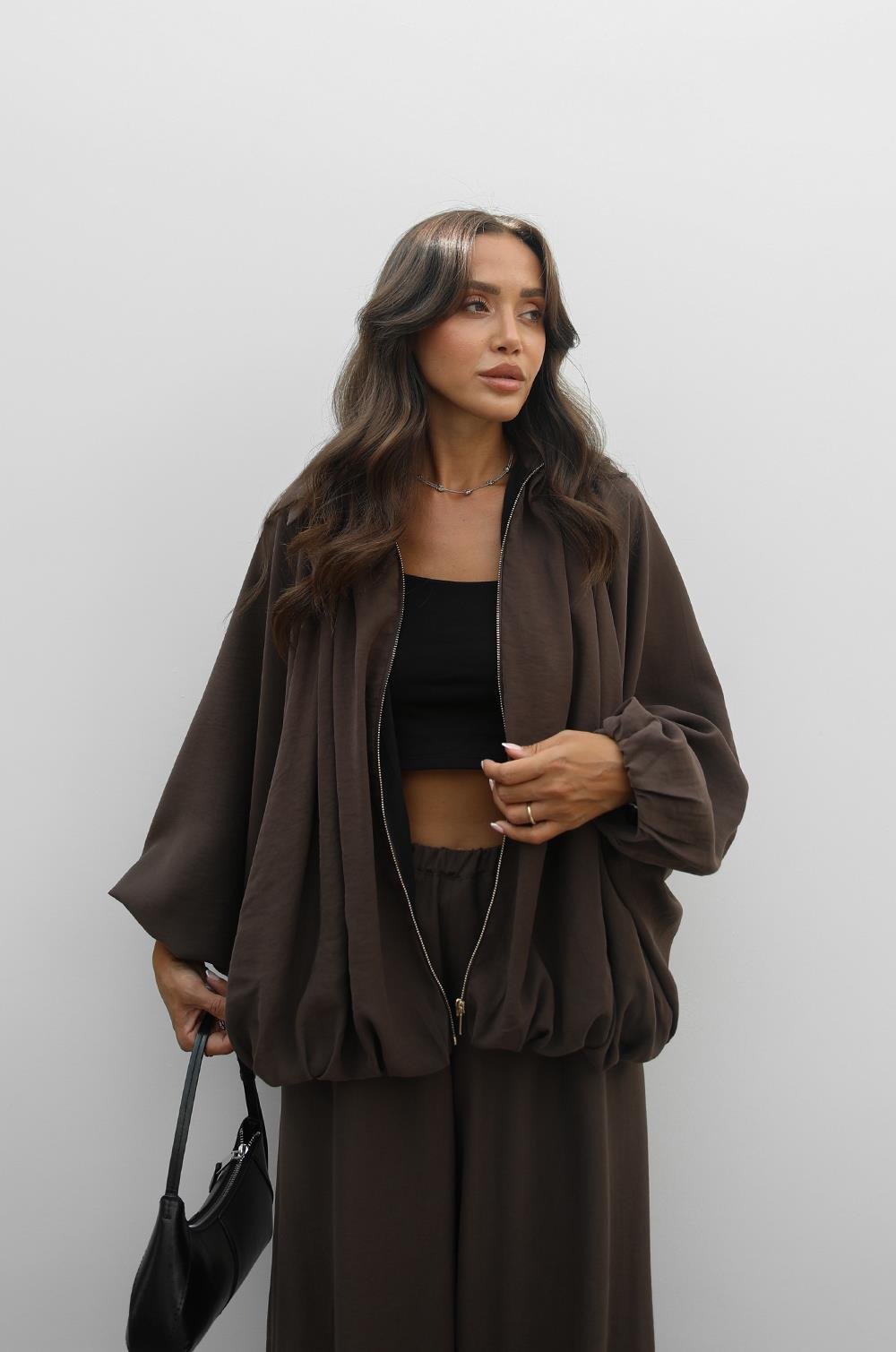 KAHVERENGI YARASA KOL FERMUARLI CEKET