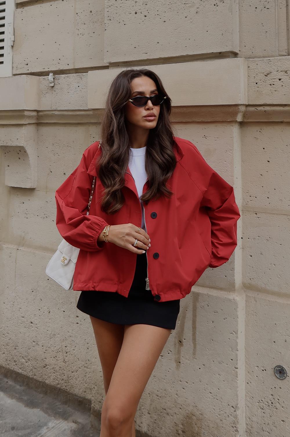 KIRMIZI RAINY DIK YAKA BOMBER CEKET