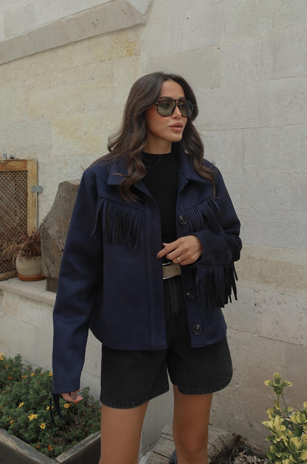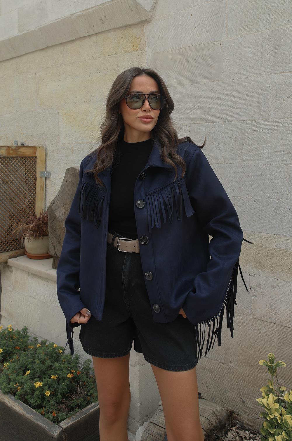 LACIVERT PÜSKÜL DETAYLI SÜET CEKET