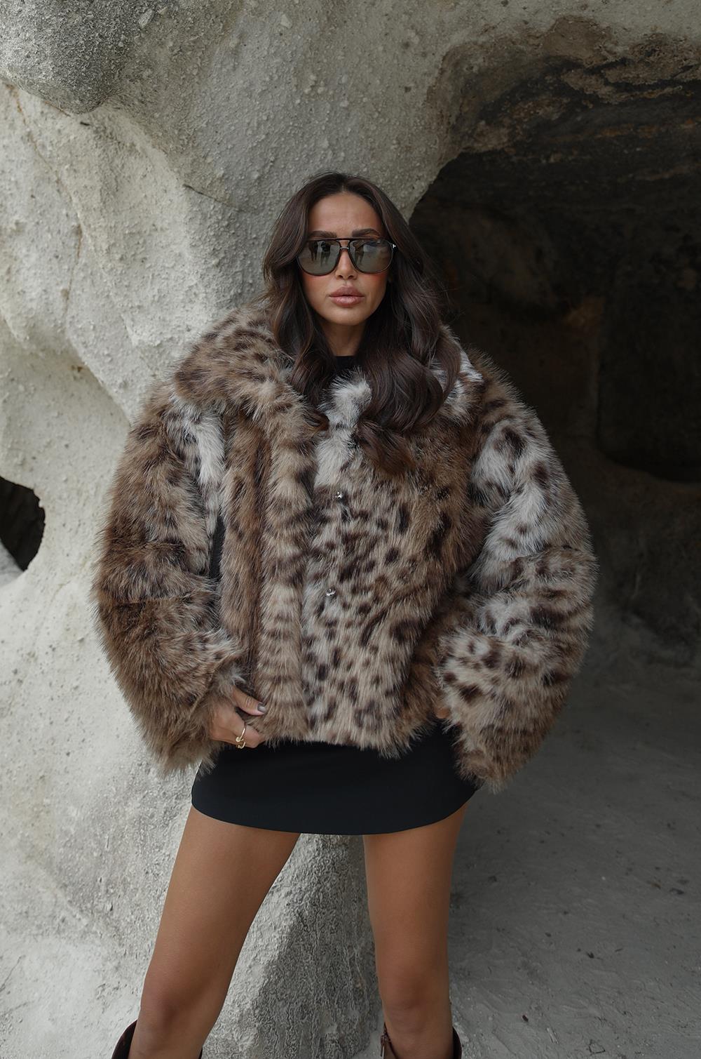 LEOPAR DESENLI KATLI YAKALI KÜRK modeliyle günün her anında şıklığı yakala. Casual look tarzı sevenler için sade ama etkileyici bir tercih.