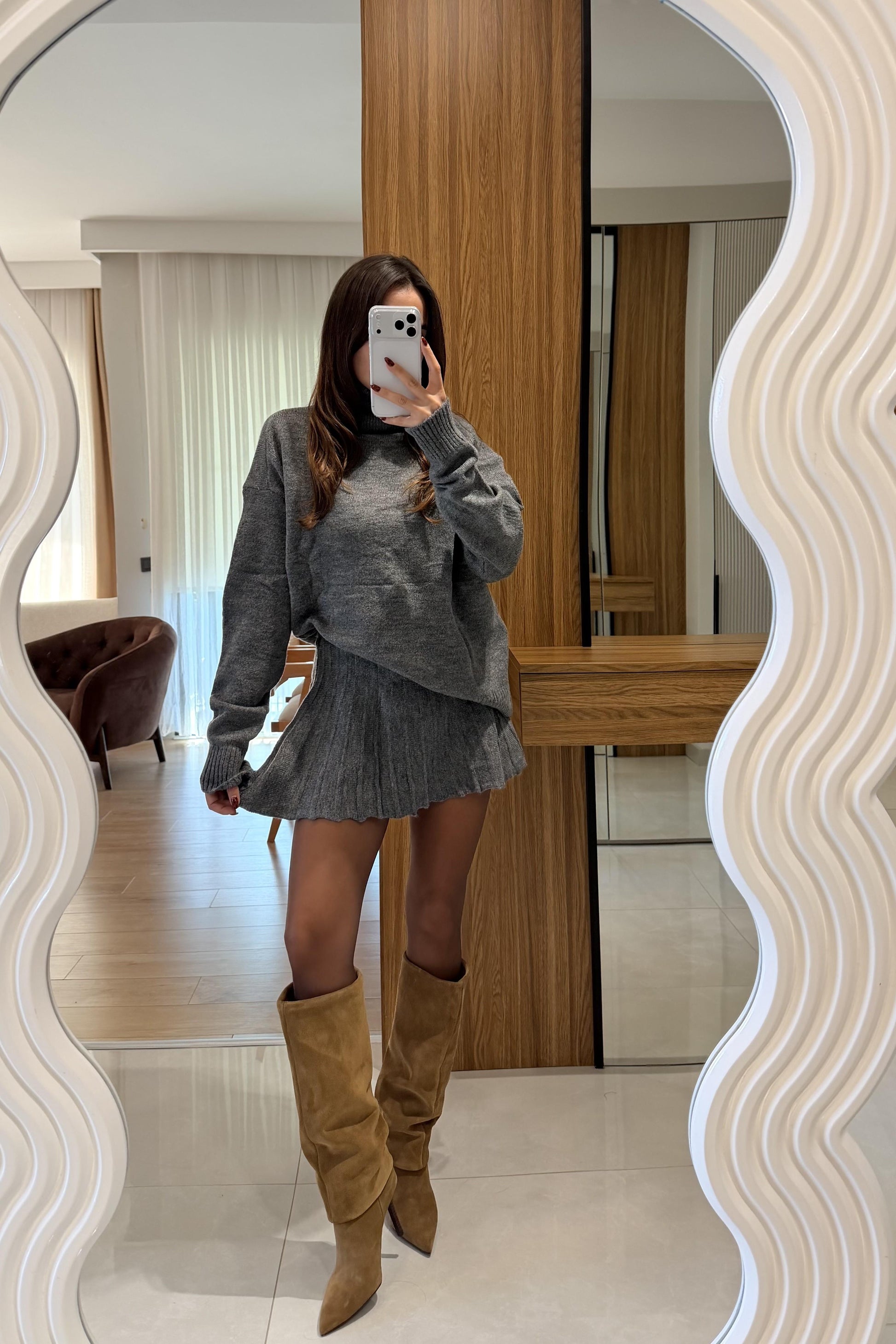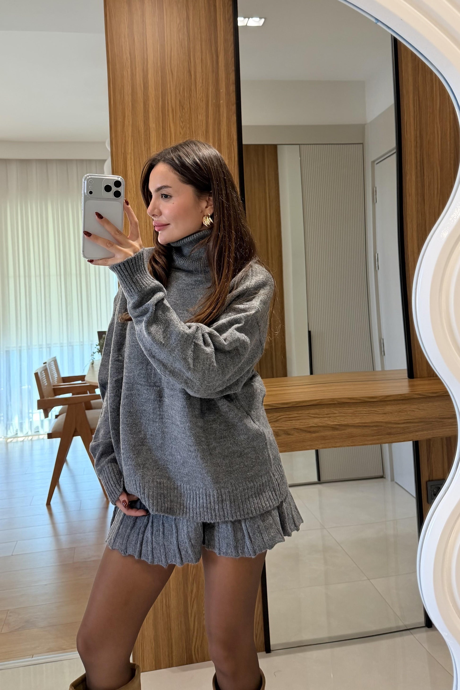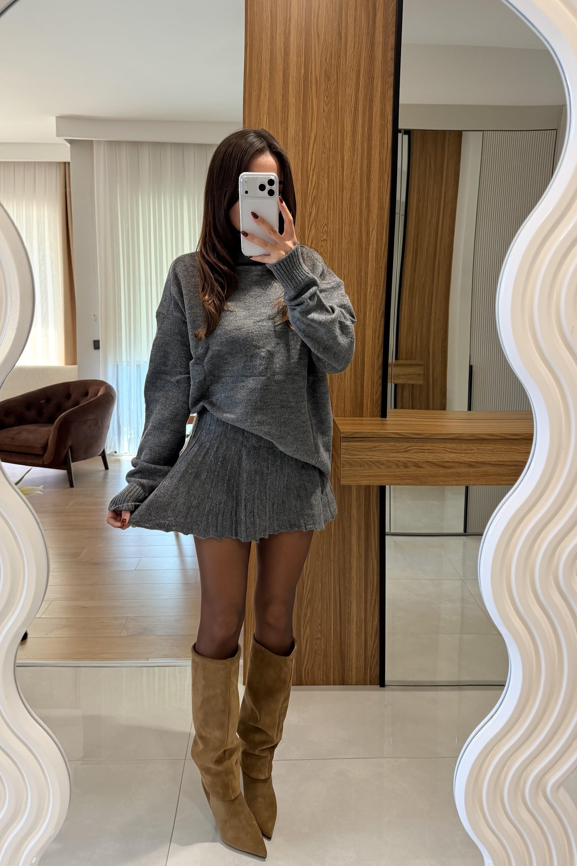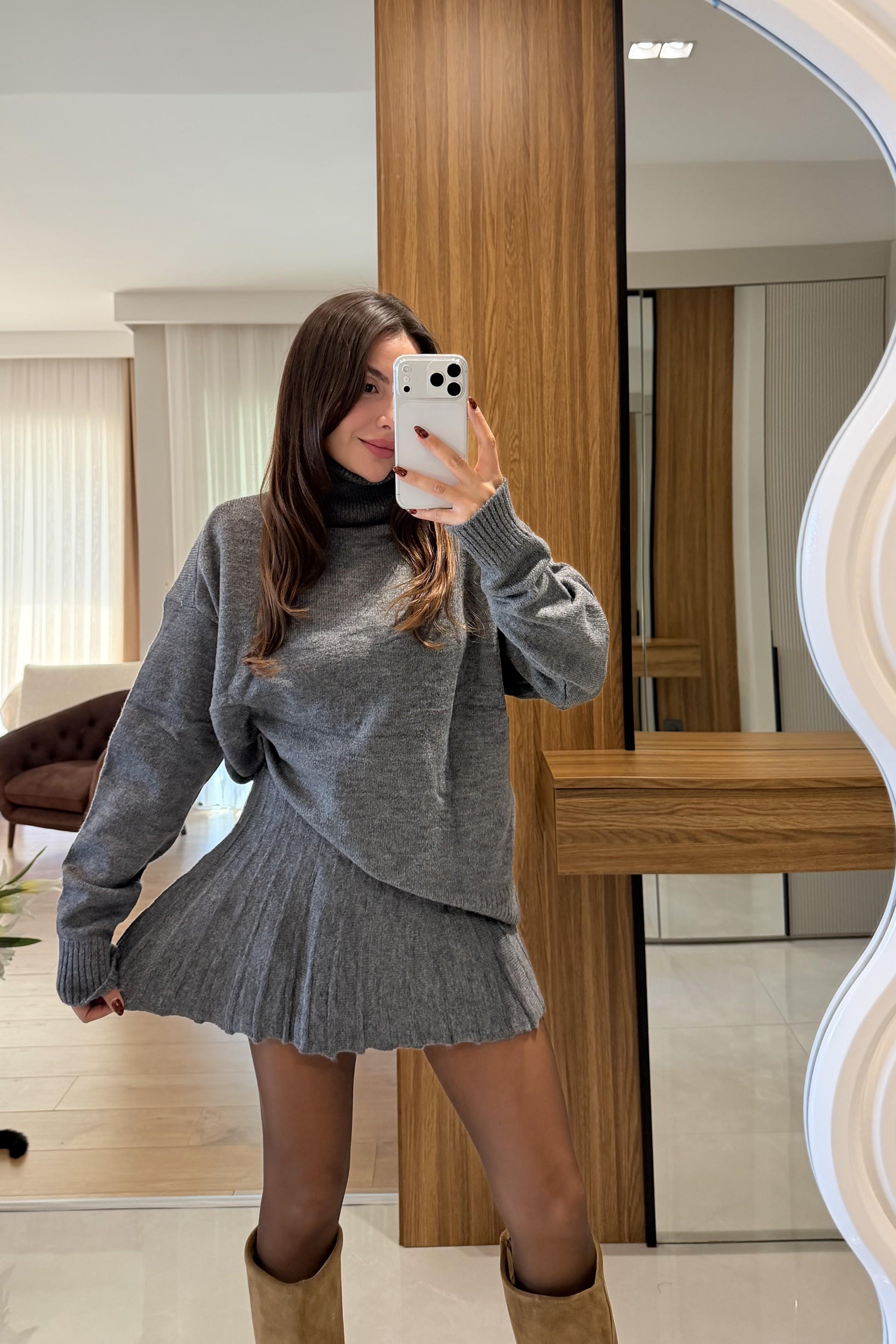 Lucien Antrasit Balıkçı Yaka Triko Etekli Takım