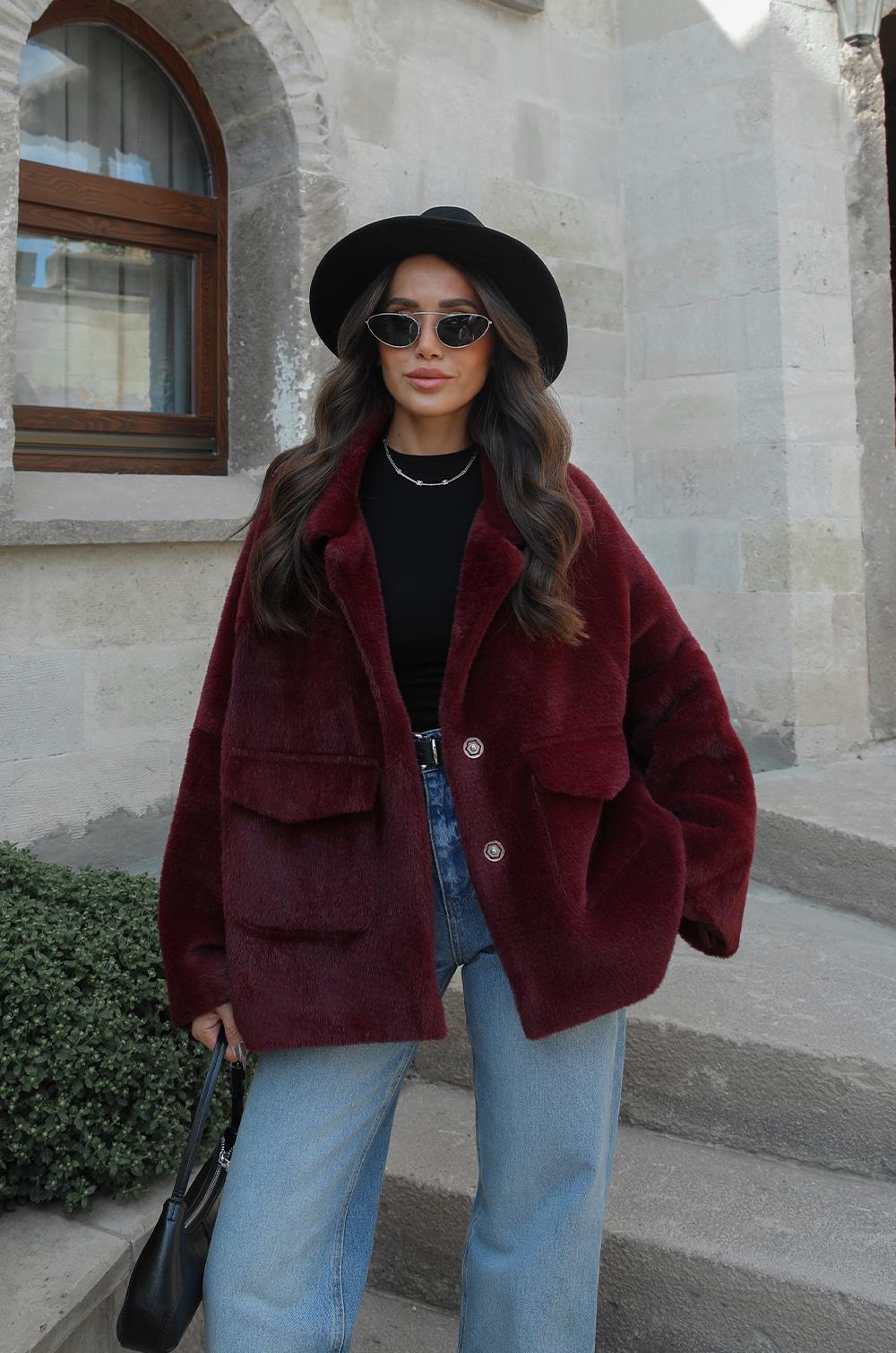 MÜRDÜM ALPAKA KÜRK KISA KABAN modeliyle kış stiline sıcaklık ve zarafet kat! Yumuşak dokusu ve modern kesimiyle her kombinine uyum sağlar. Oversize style sevenler için mükemmel bir seçim.