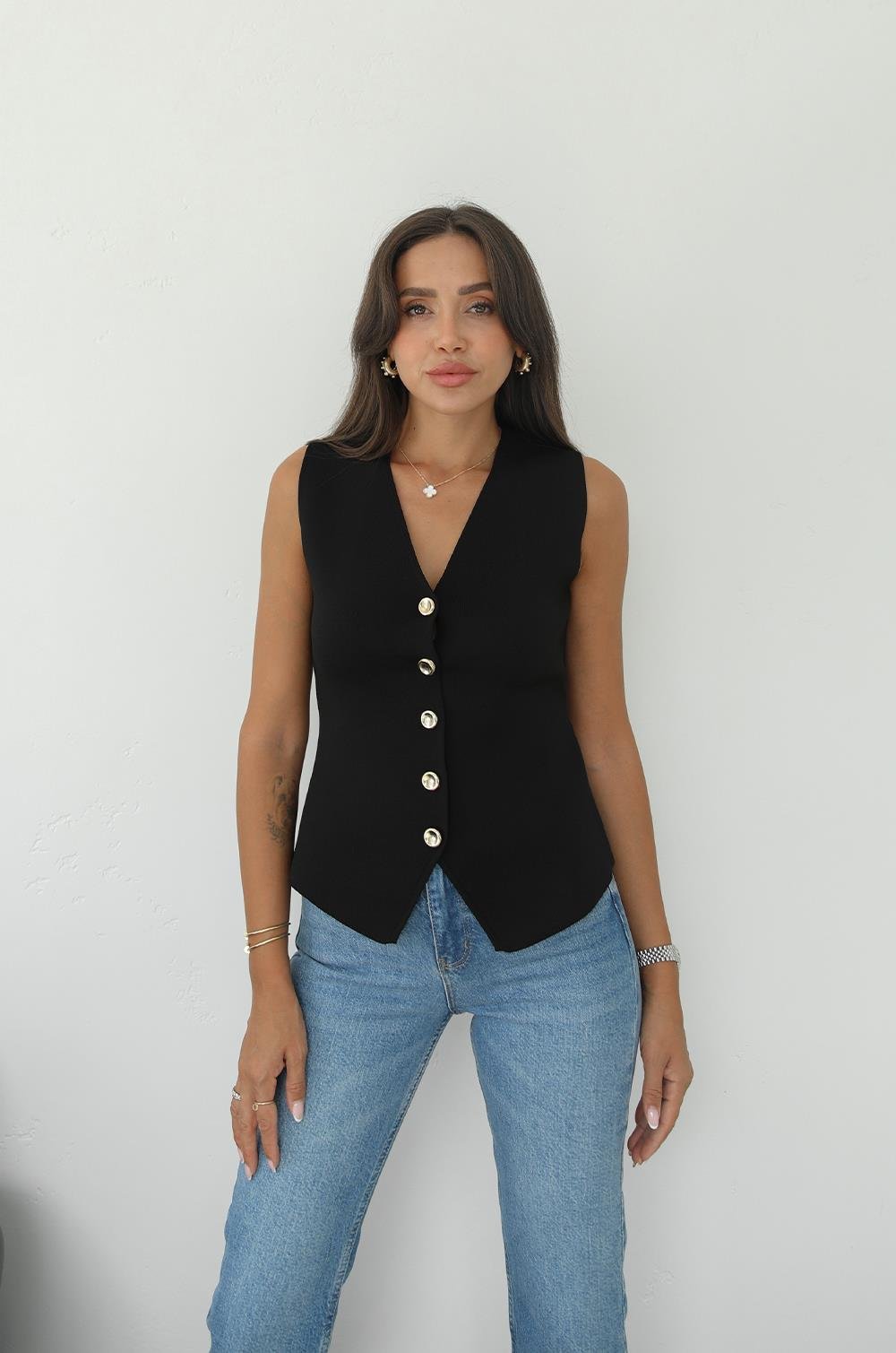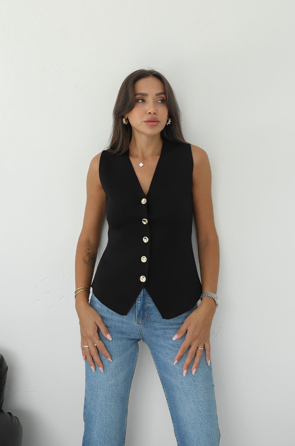 SIYAH BEŞ DÜĞMELI ÇELIK ÖRME YELEK