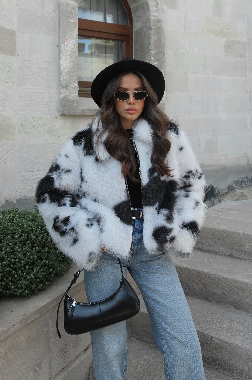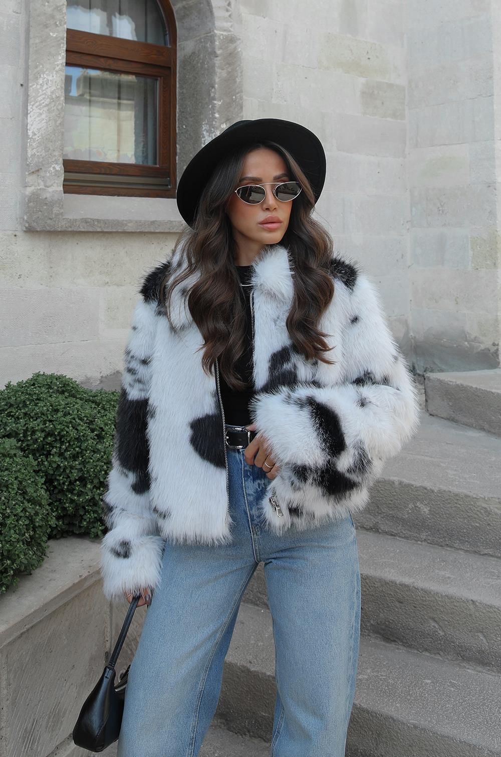 SIYAH COW PRINT SUNI KÜRK CEKET