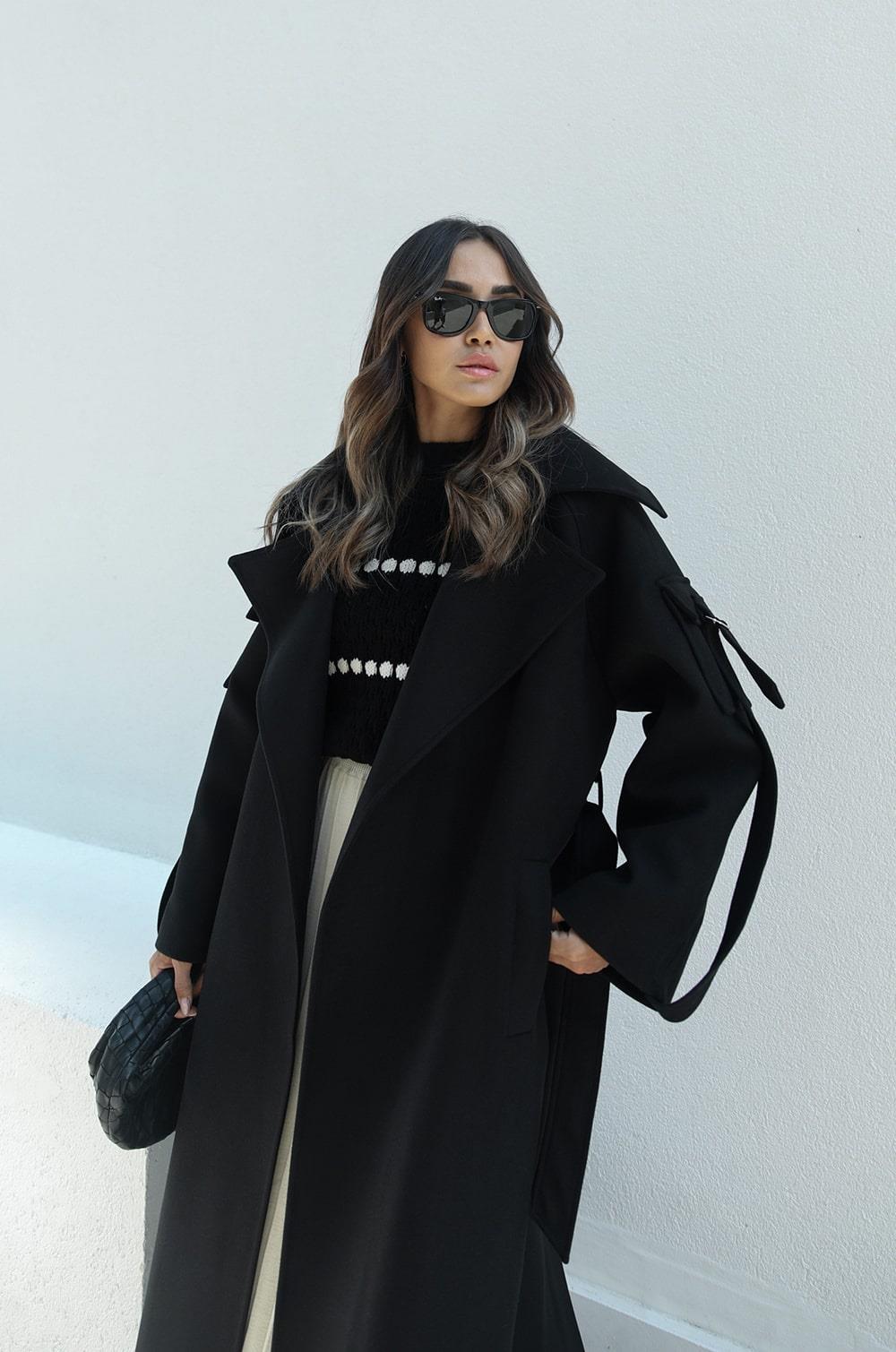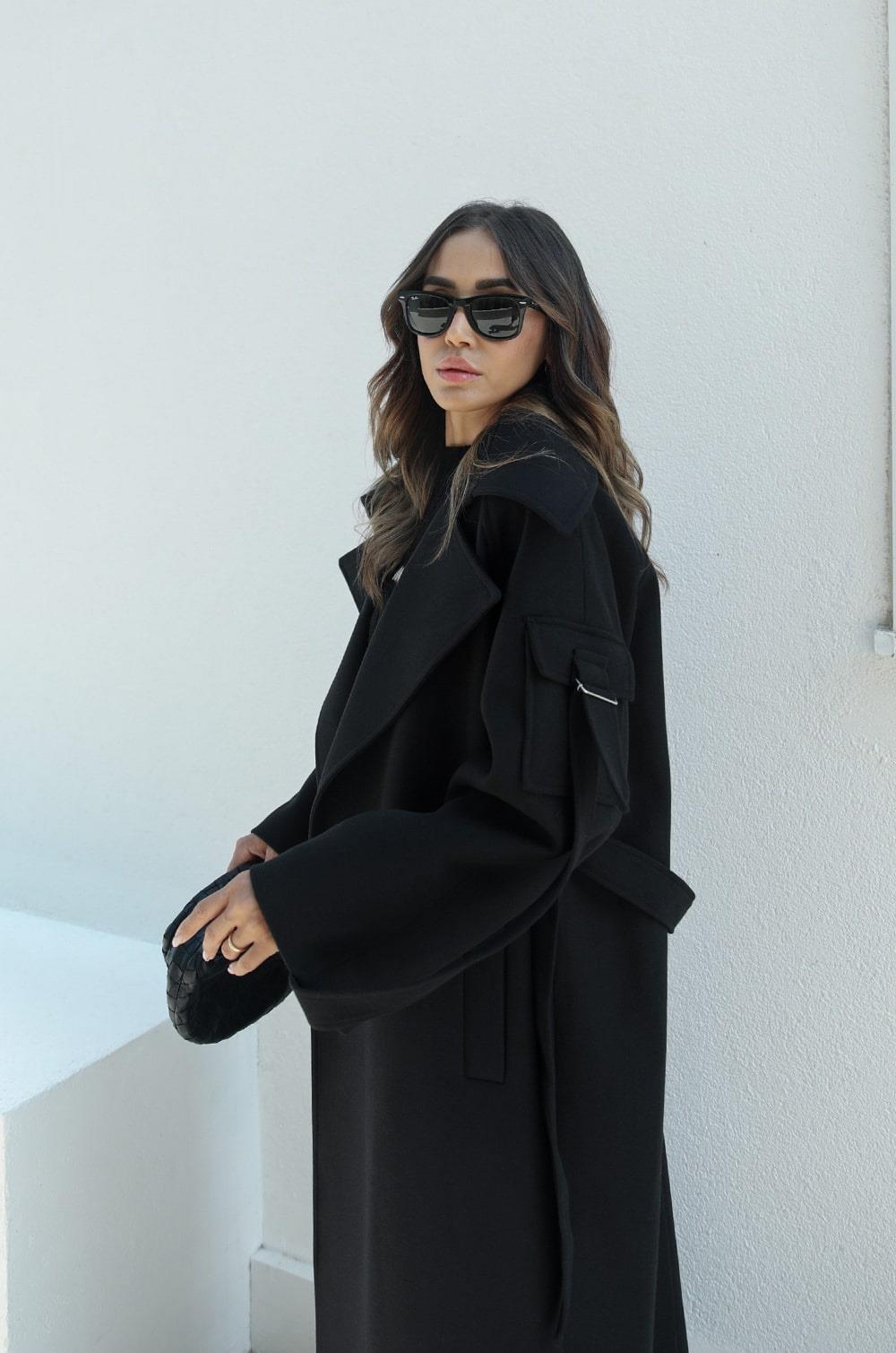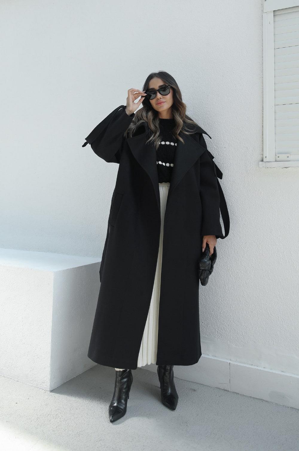 SIYAH HILDA KOLLARI CEP DETAYLI KAŞE KABAN