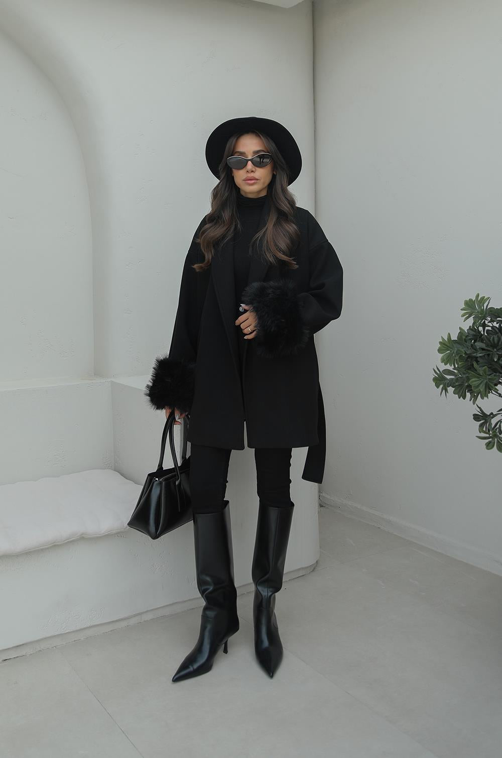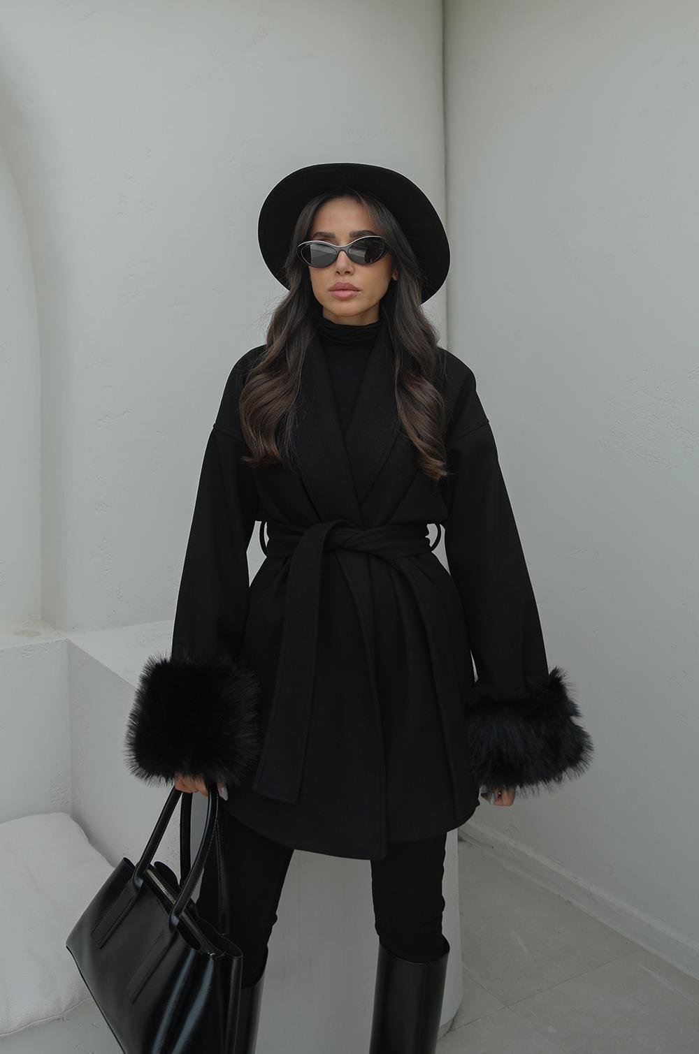 SIYAH KOLLARI KÜRKLÜ KUŞAKLI KAŞE KABAN modeliyle kış stiline sıcaklık ve zarafet kat! Yumuşak dokusu ve modern kesimiyle her kombinine uyum sağlar. Oversize style sevenler için mükemmel bir seçim.