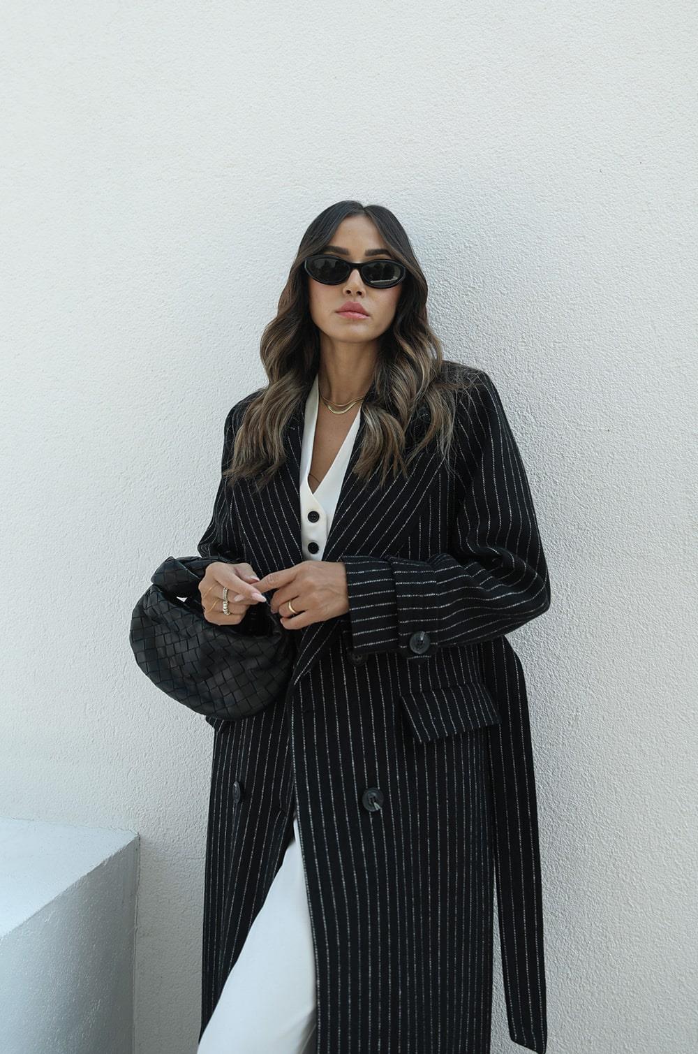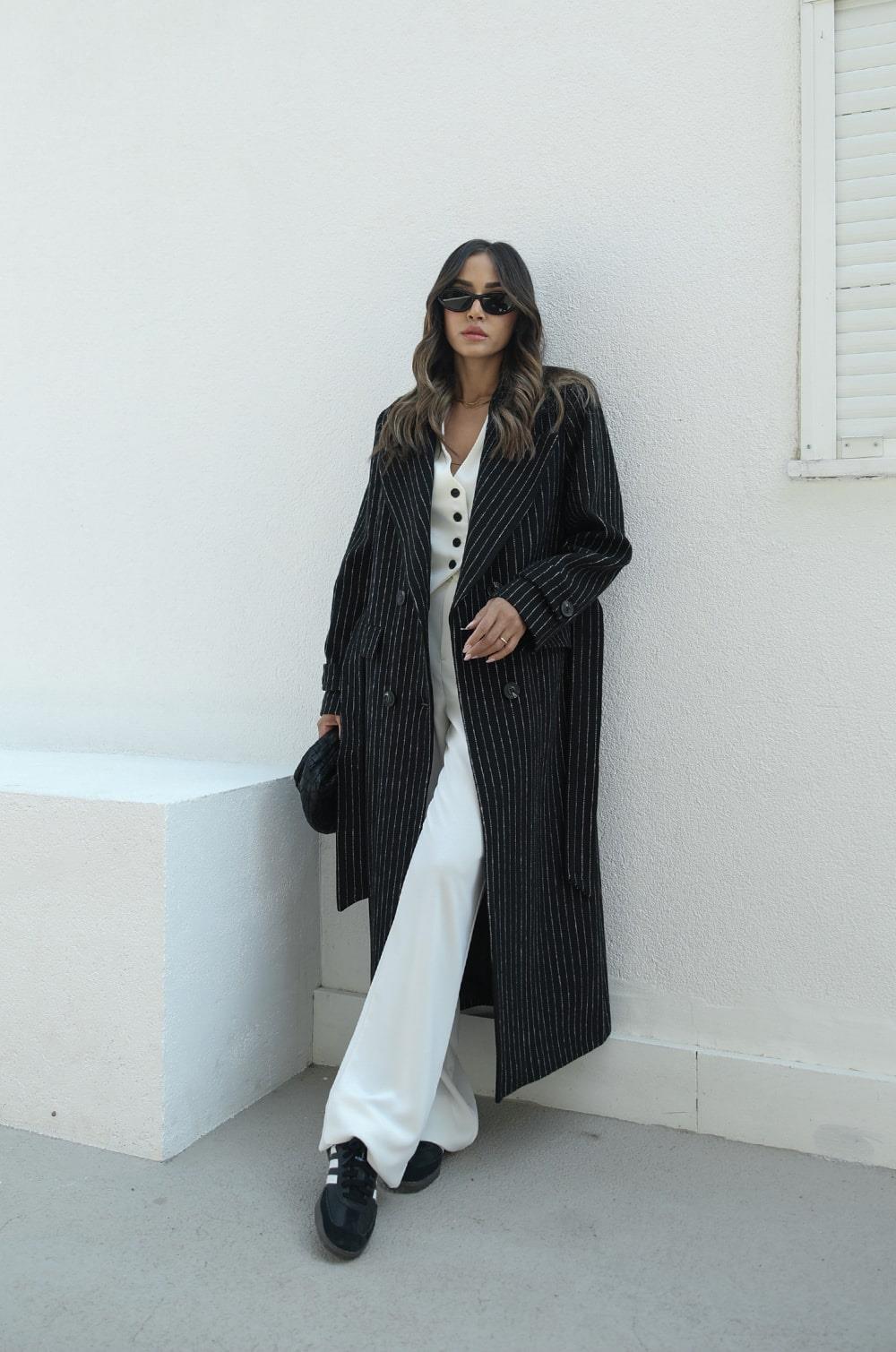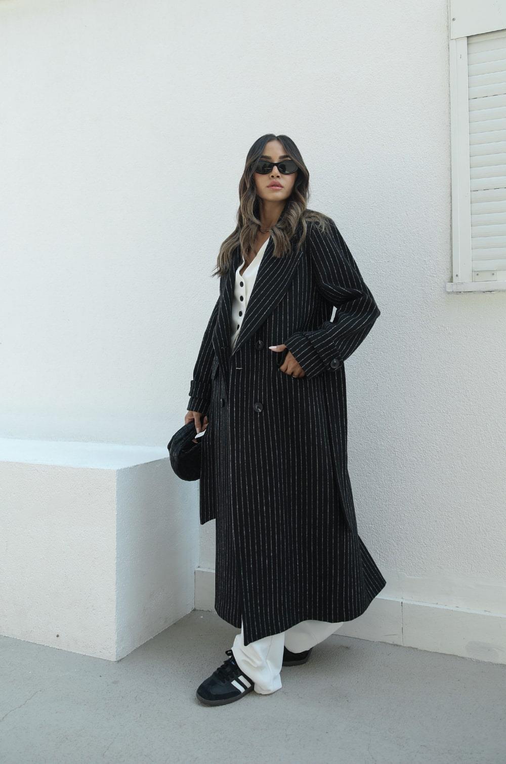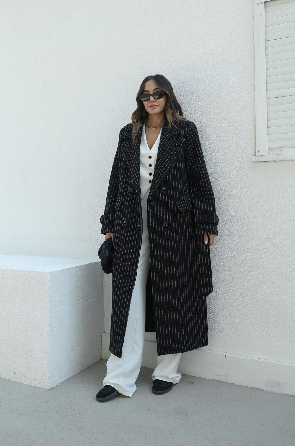 SIYAH MAFIA İNCE ÇIZGILI KUŞAKLI KABAN