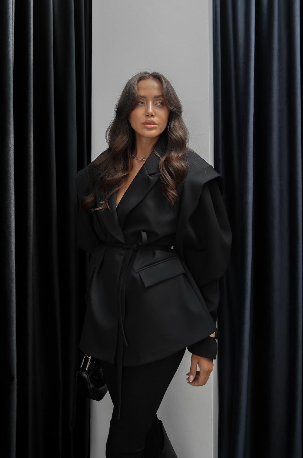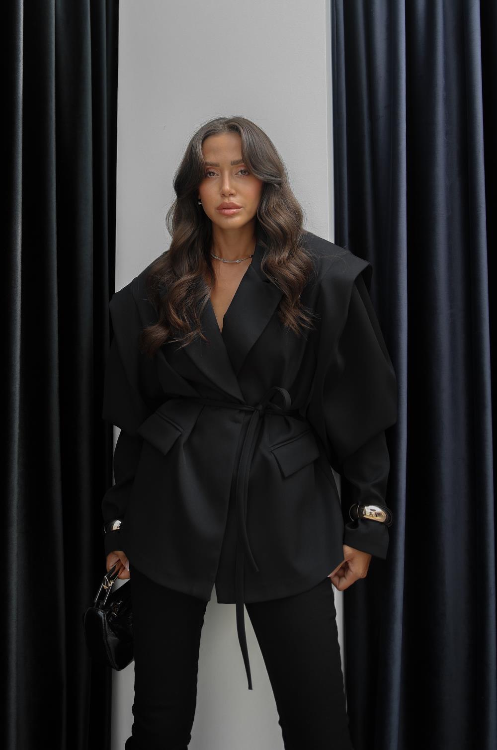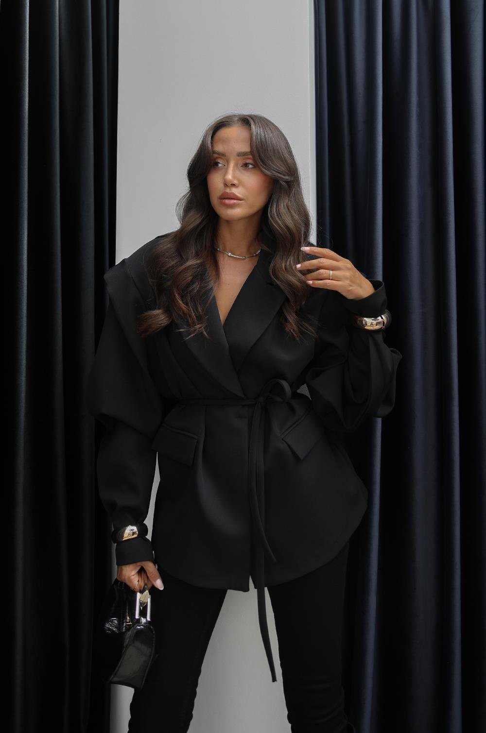 SIYAH MARIBO VATKALI KUŞAKLI CEKET