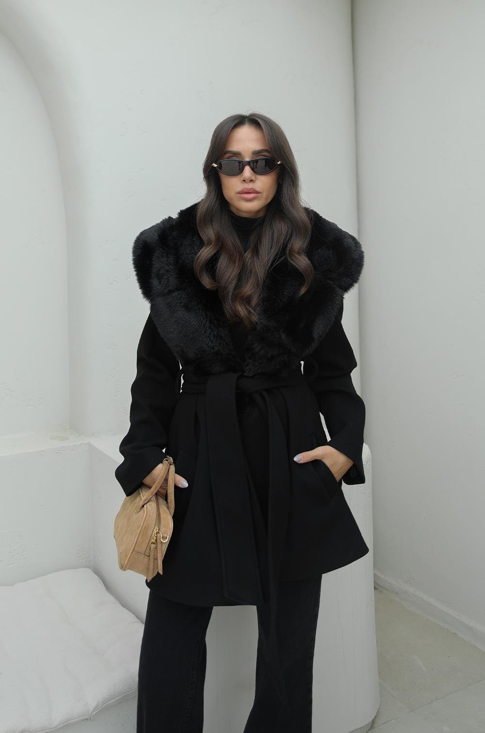 SIYAH OPULENT YAKASI KÜRKLÜ KUŞAKLI KABAN modeliyle kış stiline sıcaklık ve zarafet kat! Yumuşak dokusu ve modern kesimiyle her kombinine uyum sağlar. Oversize style sevenler için mükemmel bir seçim.