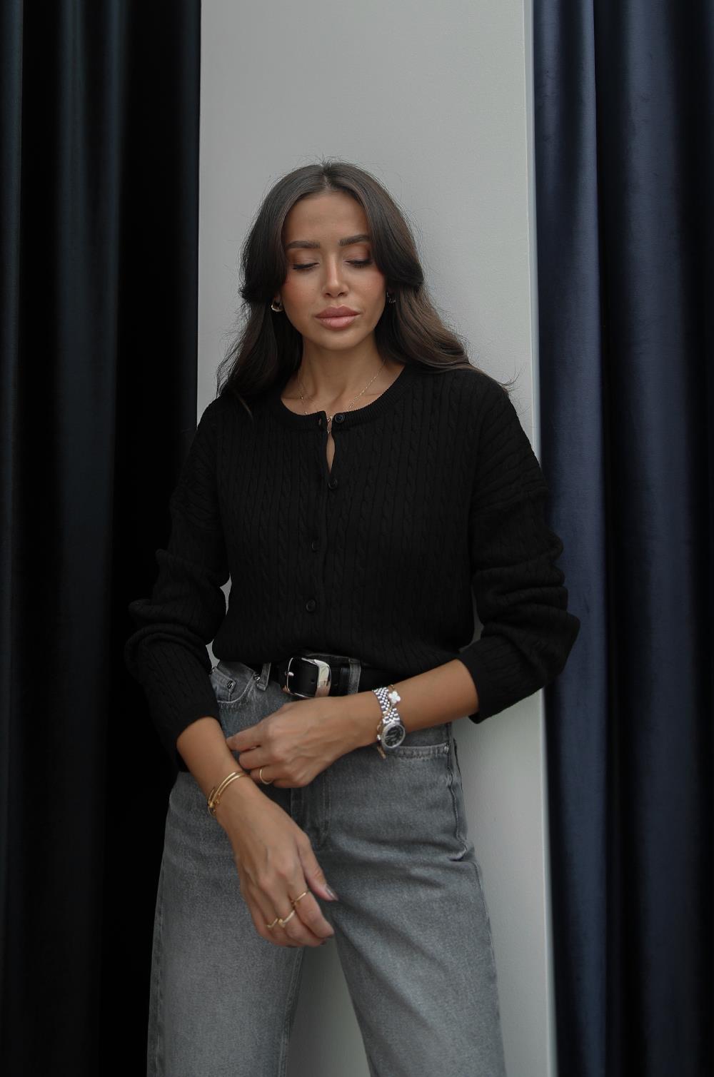 SIYAH SAÇ ÖRGÜLÜ HIRKA
