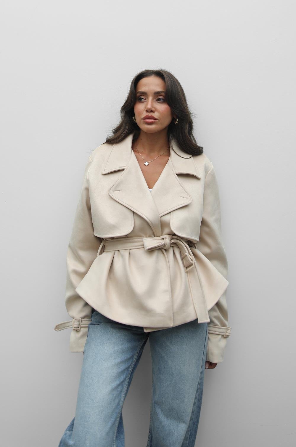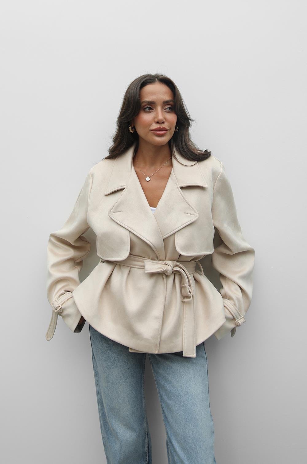 TAŞ RENGI GAVIN KUŞAKLI SÜET CEKET