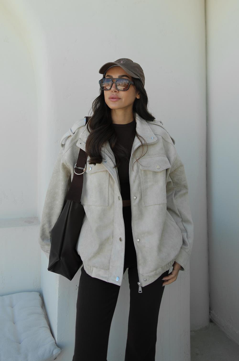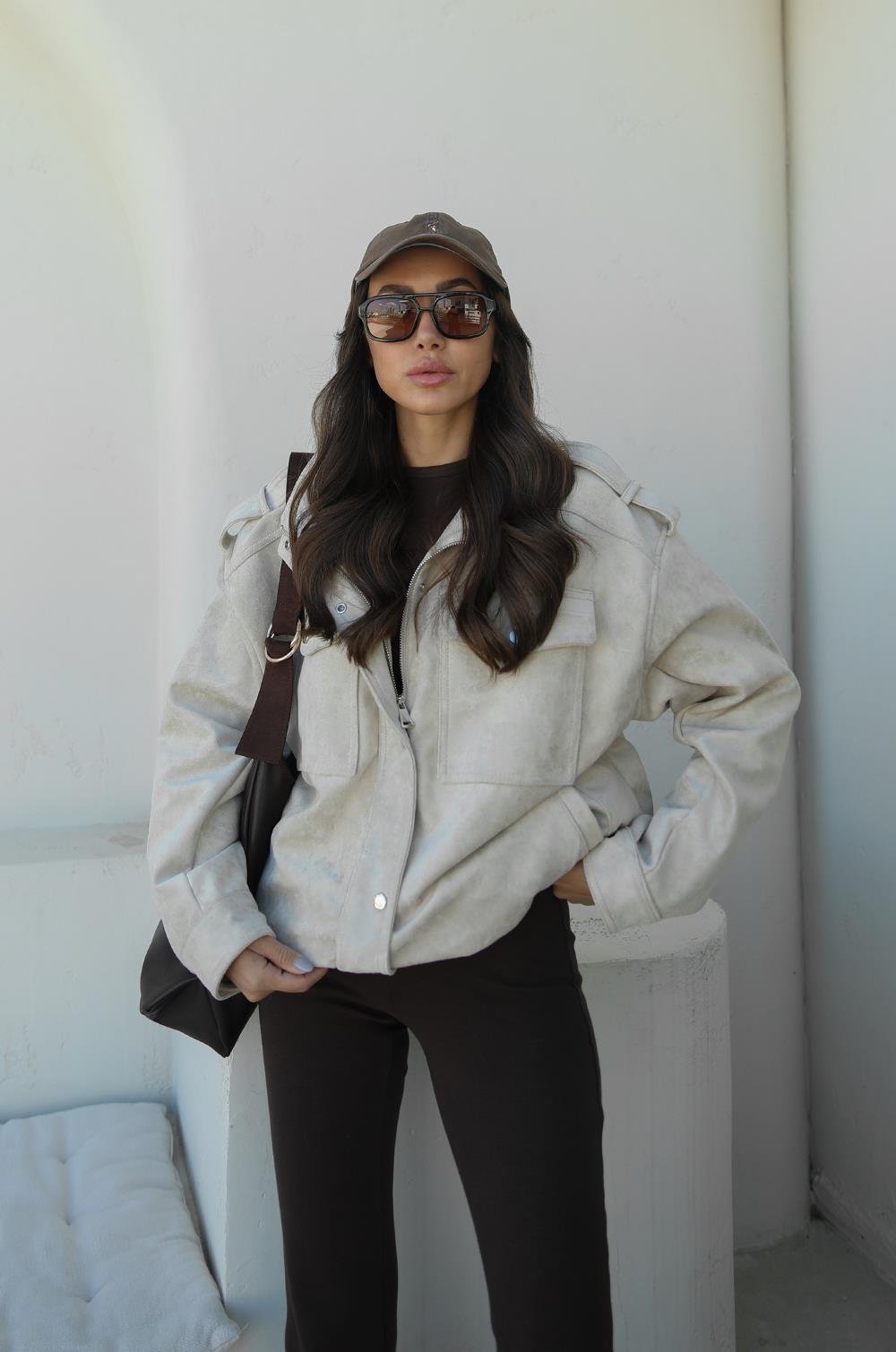 TAŞ RENGI PREMIUM FABRIC DERI SÜET CEKET
