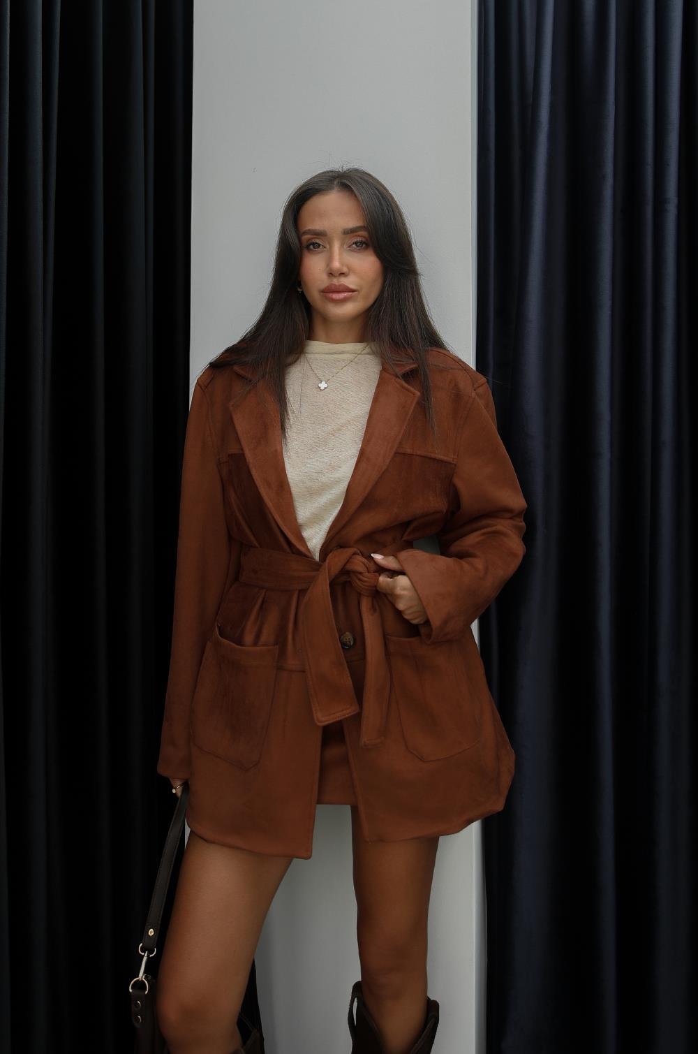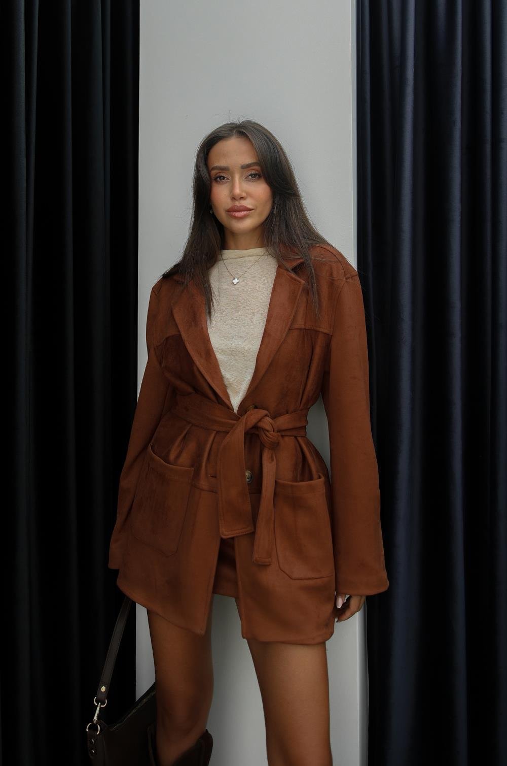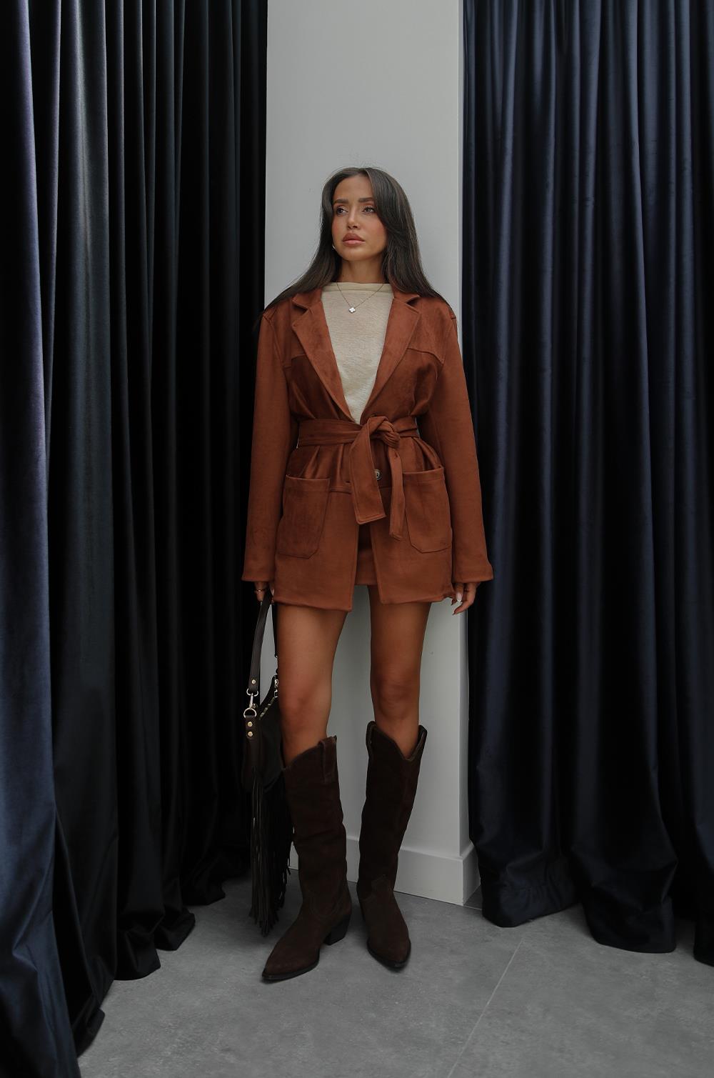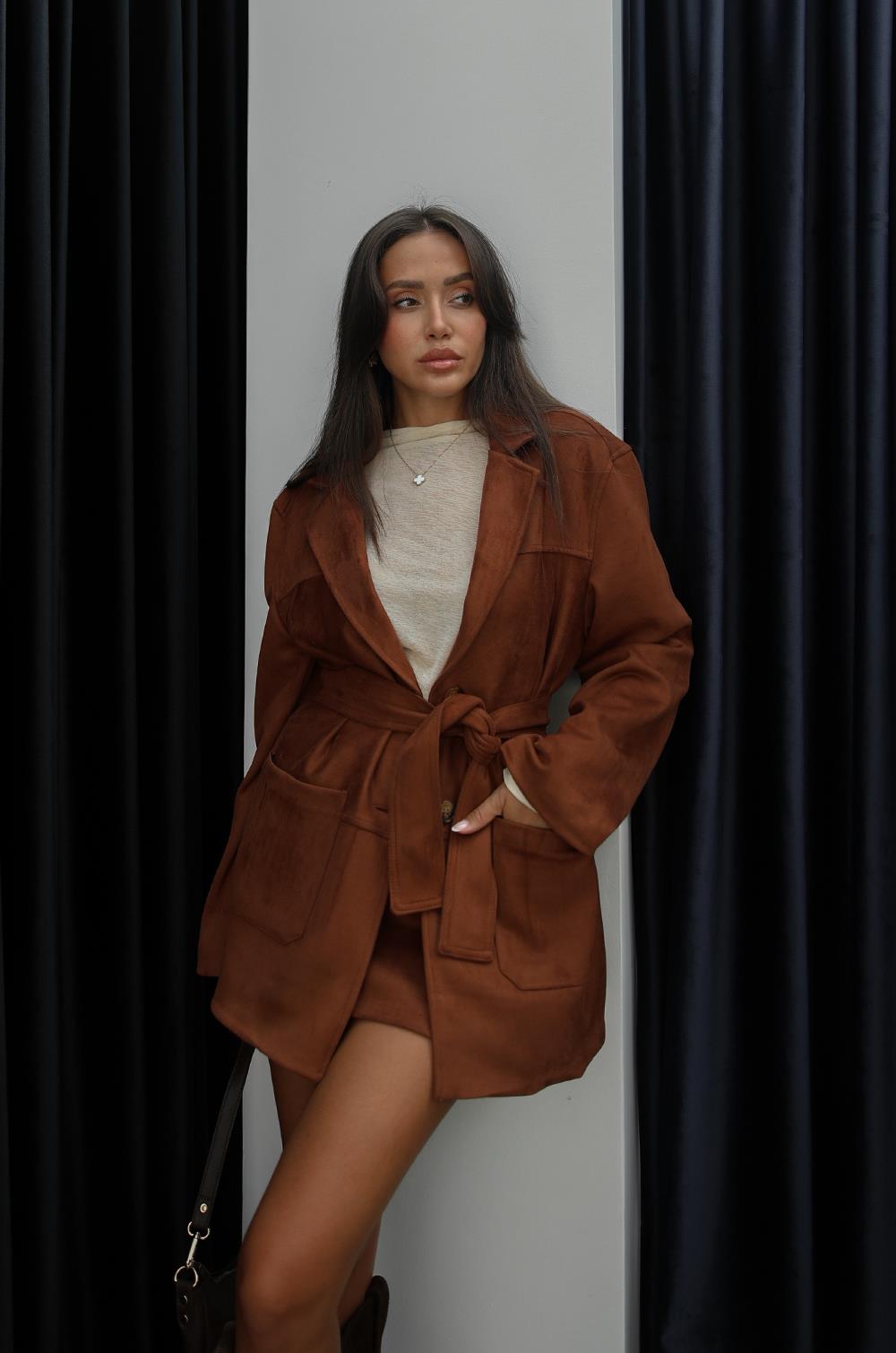 TABA GENIŞ CEPLI KUŞAKLI SÜET CEKET