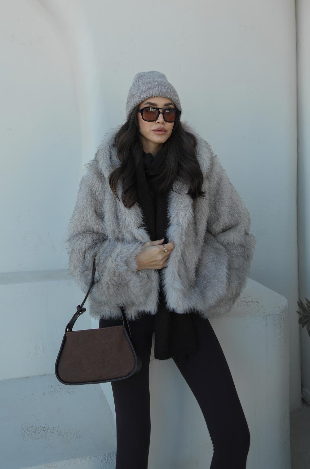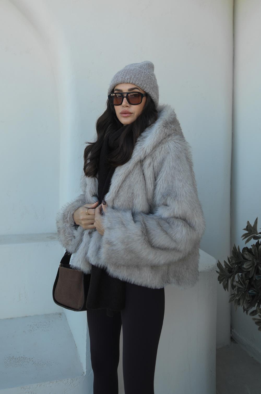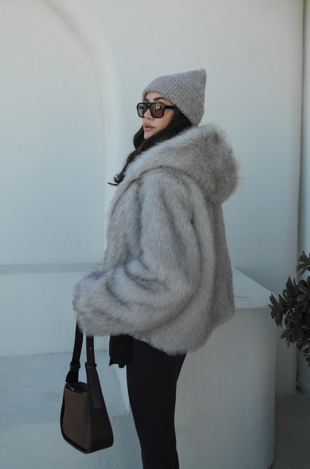 TAŞ RENGI KAPÜŞONLU SUNI KÜRK KABAN