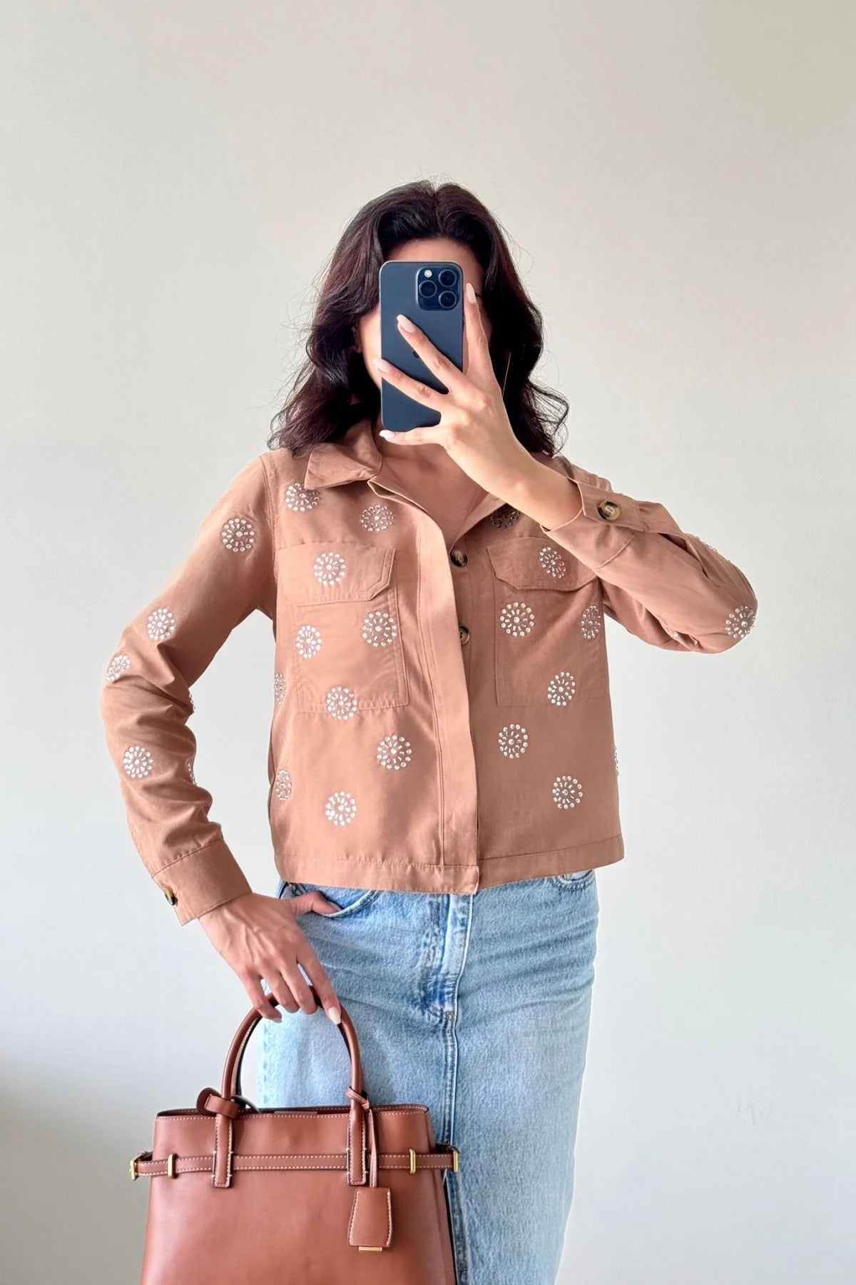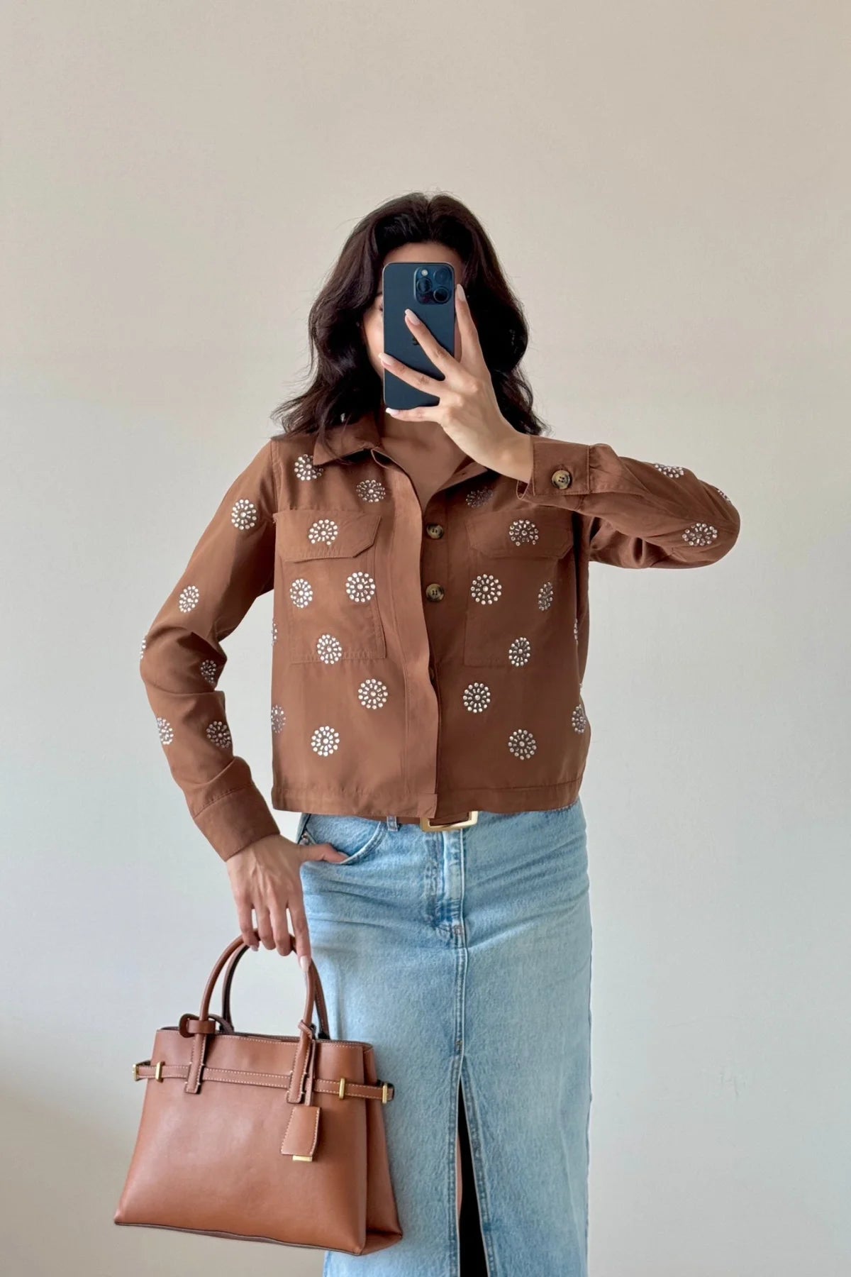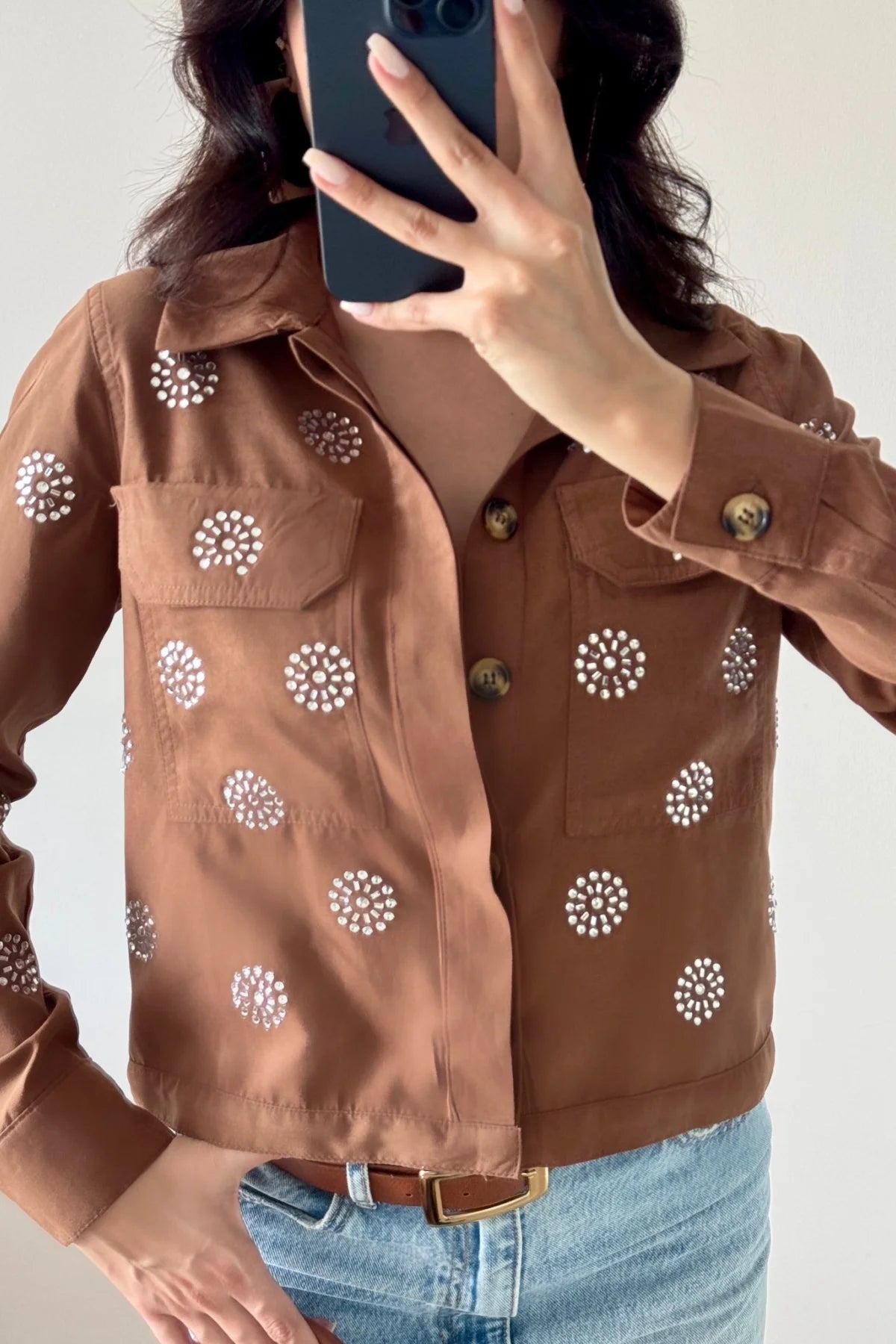 Taşlı Uzun Kollu Cepli Düğmeli Süet Ceket